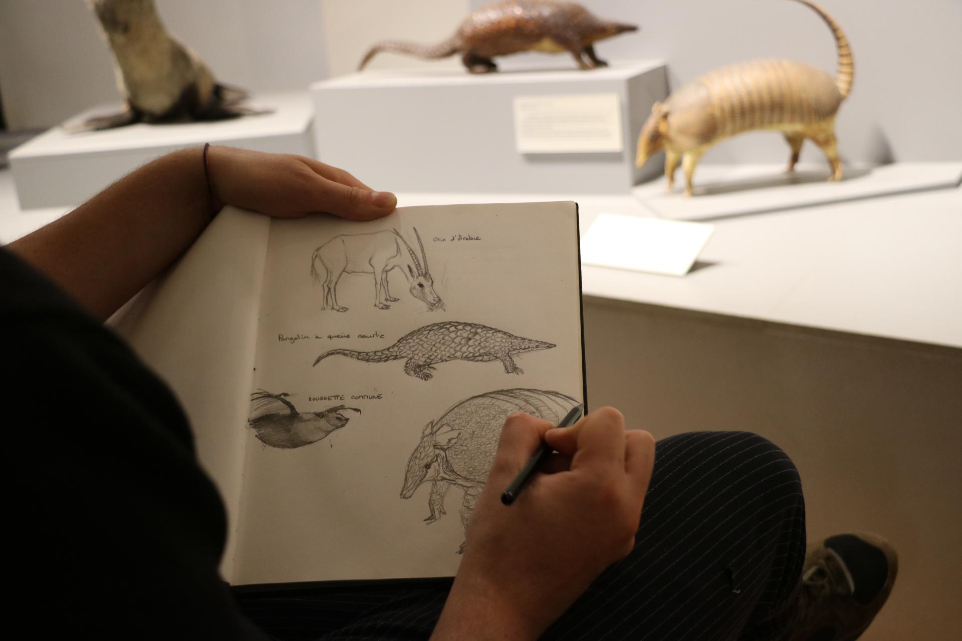 Pendant que nos modèles poseront sans broncher, Marion Vandenbroucke, illustratrice professionnelle et dessinatrice animalière, sillonnera les allées du Musée pour vous conseiller et partager son expérience.